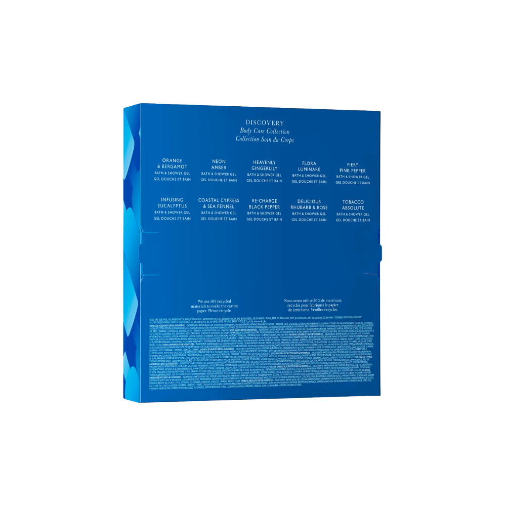Ontdek je nieuwe travel essential: de Discovery Bath Set van Molton Brown. Deze luxueuze collectie bevat tien van de meest geliefde, bekroonde Bath & Shower Gels perfect om mee te nemen op reis of om thuis verschillende stemmingen en geuren te verkennen. Van verkwikkend en energizing tot warm en ontspannend: elke mini-gel biedt een unieke beleving.