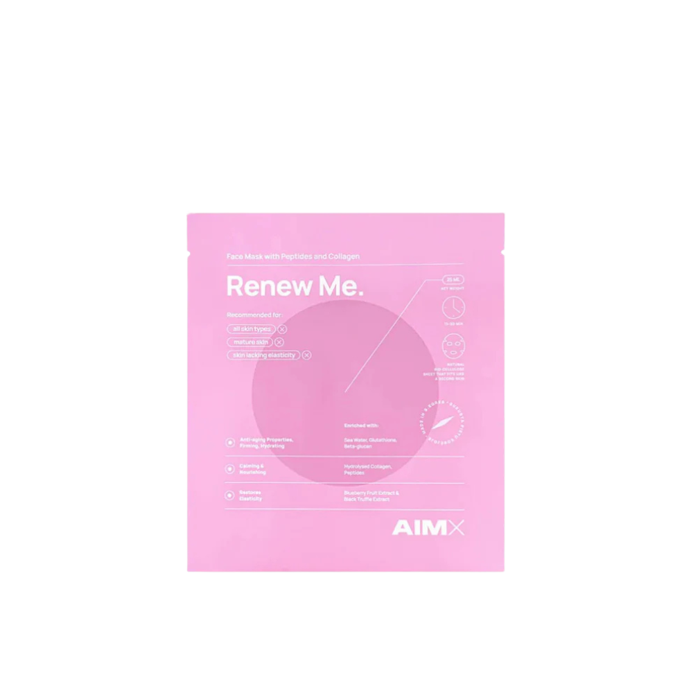 Heb je een feestje waarbij je wilt stralen? Dit hoog geconcentreerde gezichtsmasker bereidt je huid hier perfect op voor. Vermoeide huid? "Renew Me" is een krachtig sheet mask dat de natuurlijke glow van je huid zichtbaar voedt en versterkt! De formule revitaliseert de huid met behulp van collageen, glutathion, truffelextract en peptiden. Het masker is gemaakt van plantaardige bio-cellulose, wat 100% aan de huid hecht en als een tweede huid fungeert. Hierdoor kunnen de actieve ingrediënten goed de huid binnendringen. Dit masker geeft de huid een stralende glans, stimuleert huidvernieuwing, zorgt voor een rijke hydratatie van de huid en heeft een verzachtende, voedende werking.