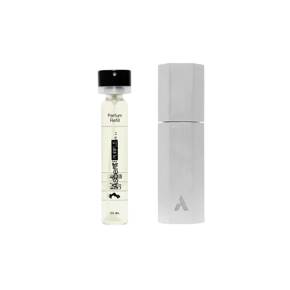 De Starter Pack bevat het parfumextract (refill) met spray en de elegante zilveren Ascent-case. Deze herbruikbare case vormt de basis van Ascent’s duurzame navulsysteem, waarmee je eindeloos kunt blijven bijvullen terwijl je geniet van een luxe, compacte verpakking.