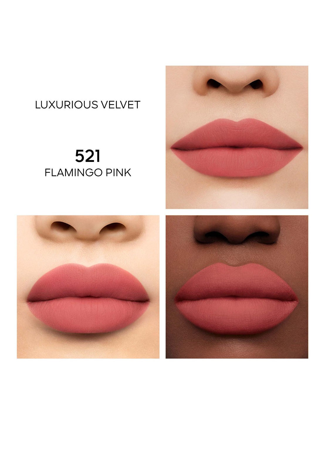 Ontdek 521 Flamingo Pink, een levendige, frisroze tint die de lippen onmiddellijk laat opleven. Deze kleur uit de Rouge G Luxurious Velvet-collectie combineert een intens matte finish met een fluweelzachte, comfortabele textuur.