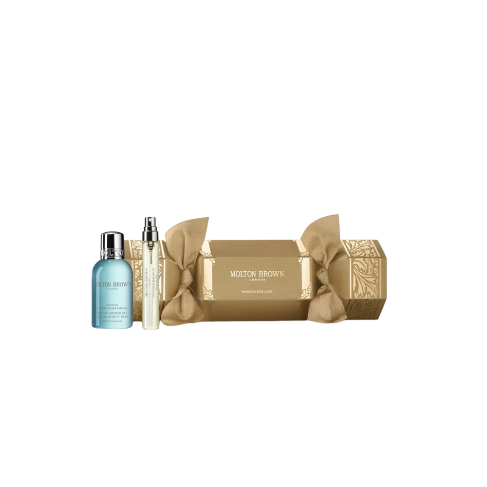 Geef uw feesttafel een luxueuze uitstraling met deze weelderige Christmas Cracker vol verfijnde geurbeleving. Binnenin vind je een van Molton Brown’s meest geliefde Travel Fragrances met bijpassende douchegel doordrenkt met de verkwikkende, mariene frisheid van een zee-doordrenkt avontuur. Een opwekkende geur die nog lang na de feestdagen blijft hangen.