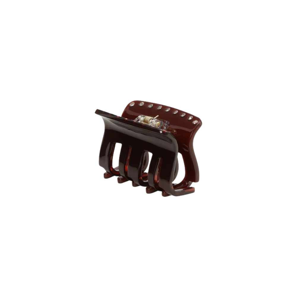 De Fie Chocolate Fondant Big in mini, is een stevige haarklauw ontworpen in een mooie, glanzende chocoladebruine tint met fonkelende strass-steentjes. De brede vorm en sterke sluiting zorgen voor een stevige grip, voor een halve up-do of kleinere haarplukken. Een stijlvolle keuze als je functie wilt combineren met een elegante afwerking.